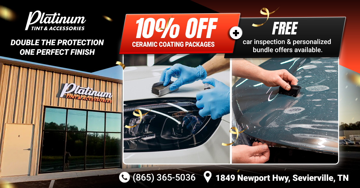 At Platinum Tint & Accessories, we specialize in auto ceramic coating and paint protection film (PPF) services trusted by drivers across Sevierville and Sevier County, TN.